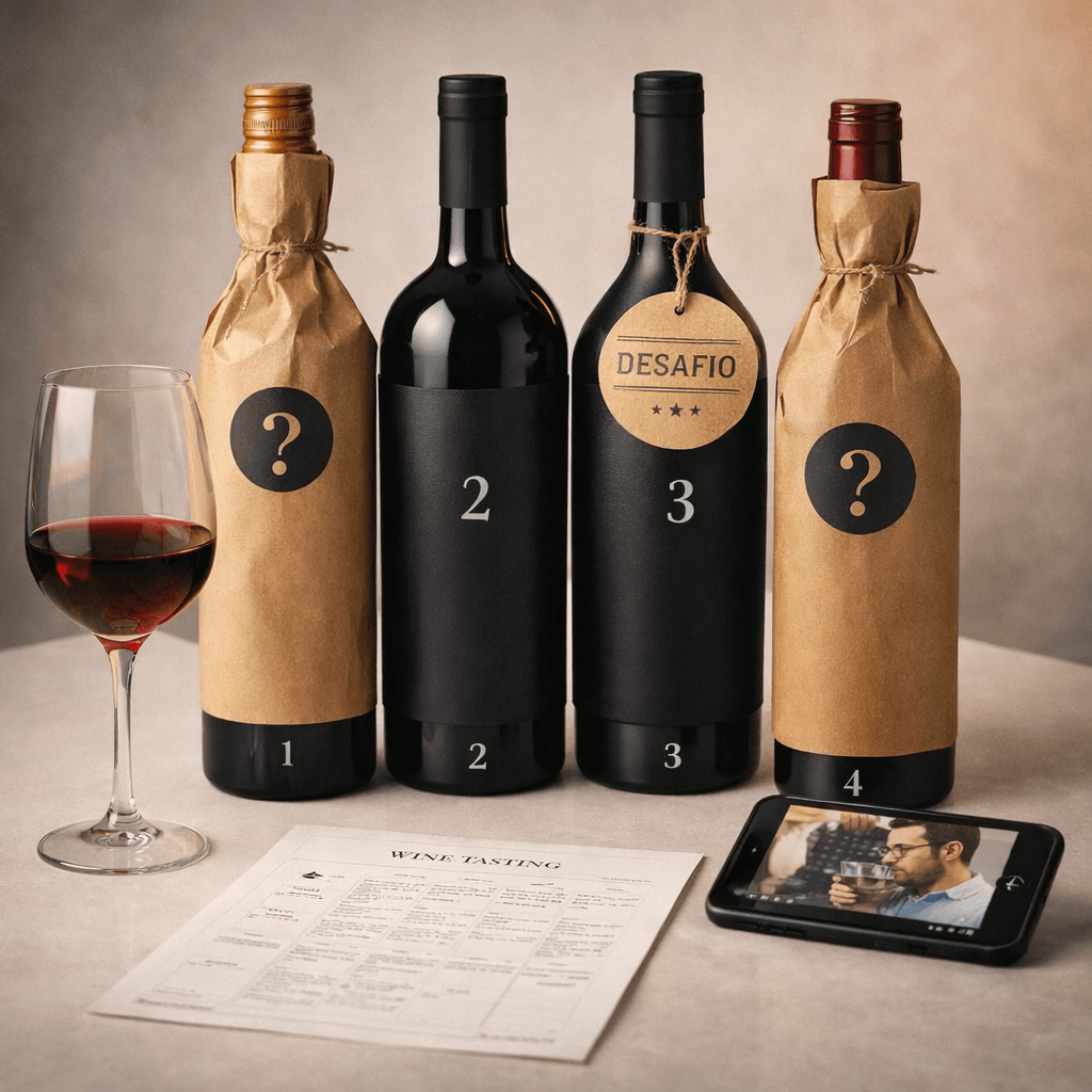 Durante 4 semanas, você vai provar quatro estilos diferentes de vinho, acompanhados de vídeos explicativos, sugestões de harmonização e pequenos desafios de aprendizado.